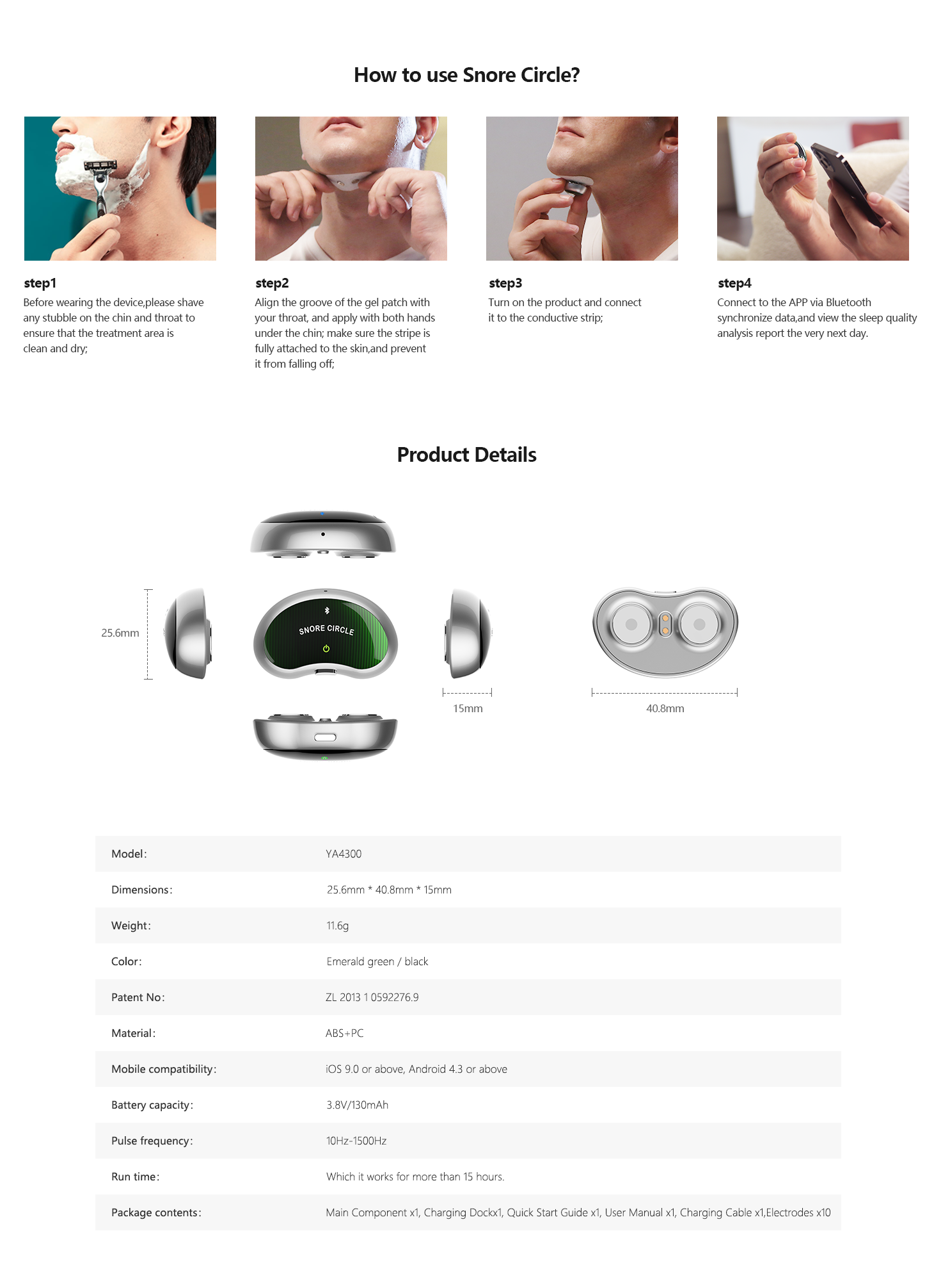 - 【Easy to Carry】Unlike many obstructive sleep apnea (OSA) devices on the market that are heavy, bulky and can be panic inducing, Snore Circle is ultra-lightweight, only 11.6g, unobtrusive, and easy to use. Just place the conductive strip and device under the chin when sleeping and you won’t even notice it. Truly comfortable, truly convenient.